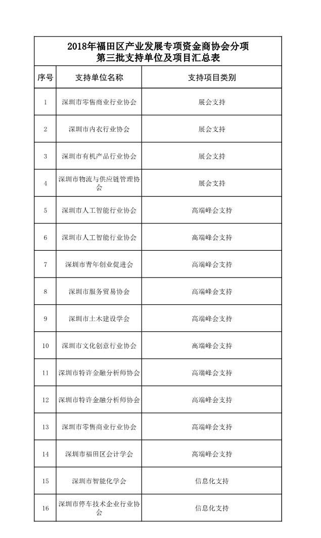 2018年12月21日,福田企服中心公布了2018年福田區產業發展專項資金商協會分項第三批支持單位及項目匯總表,其中,我會獲得新落戶支持。