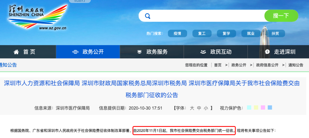 自2020年11月1日起,企業(yè)職工、靈活就業(yè)人員各項(xiàng)社會(huì)保險(xiǎn)費(fèi)交由稅務(wù)部門統(tǒng)一征收(天津?yàn)?1月21日起實(shí)行)。
